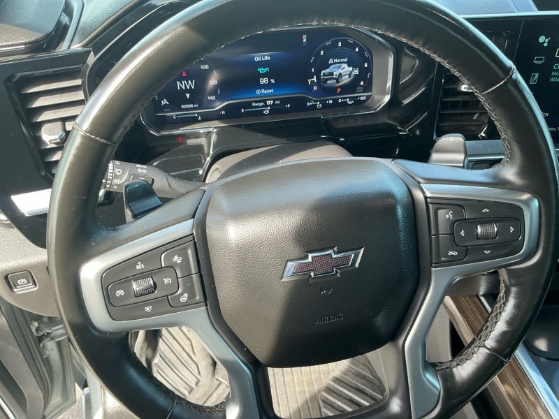 One-owner 2024 Chevrolet Silverado 1500 LT Trail Boss in Gray with 62,891 miles — a powerful, well-equipped 4WD pickup ready for work, play and towing. Performance & Capability - Potent 6.2L ECOTEC3 V8 paired with a 10-speed automatic transmission for smooth, confident acceleration and heavy-duty capability. - 4WD Trail Boss chassis, auxiliary engine and transmission oil coolers, integrated trailer brake controller, hitch guidance with Hitch View and the Trailering App make towing easier and safer. - Active dual sport-mode exhaust for a more aggressive sound and driving experience. Comfort & Technology - Leather interior in Gideon/Very Dark Atmosphere with Power Driver’s Seat and up-level rear seat with storage — premium comfort and practical cabin storage. - Chevrolet Infotainment 3 Premium with Bose 7-speaker system, wireless charging, USB charge/data ports inside center console, Universal Home Remote. - Power sliding rear window, floor-mounted center console, and Convenience Package II for added everyday ease. Exterior & Protection - Eye-catching Gray exterior with LPO Dark Essentials Package, black nameplates and black tailgate lettering, aluminum/alloy wheels, molded black splash guards and ChevyTec spray-on bedliner. - Off-road assist steps and LPO off-road steps provide functionality and style. Protection Package and wheelhouse liners add durability for years of use. Additional Highlights - Power tailgate, electronic transmission range shifter, 170-amp alternator, Bose premium stereo, integrated license plate kit and steering column lock. - One owner, well-maintained and loaded with features that balance capability, comfort and style. Serious buyers: this LT Trail Boss pairs the largest available V8 with premium tech and towing hardware — ideal for those who want full-size capability with upscale appointments. Contact us to schedule a test drive.